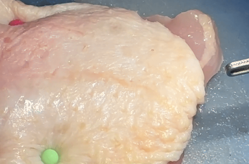 The learned residual model predicts the positional residuals and compensate the sim-to-real gap, enabling more accurate state estimations of future deformations. Green points are the real point cloud of a thin-shell. The grey mesh is the XPBD simulation compensate with learned residual.